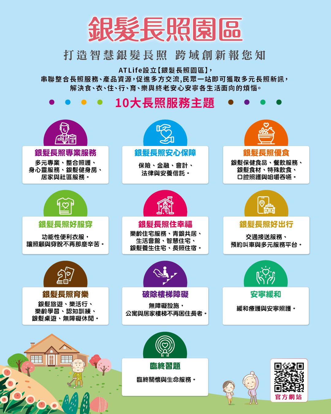 ATLife設(shè)立【銀髮長(zhǎng)照?qǐng)@區(qū)】,串聯(lián)整合長(zhǎng)照服務(wù)、產(chǎn)品資源,促進(jìn)多?交流,民眾一站即可獲取多元長(zhǎng)照新訊,解決食、衣、住、行、育、樂(lè)與終老安心安寧各生活面向的煩惱。