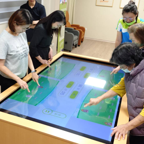 TAKA 憶萬富翁多人互動(dòng)桌是一款專門針對(duì)失智癥做為輔助訓(xùn)練的專業(yè)性產(chǎn)品,結(jié)合85吋觸控桌,透過寬大的螢?zāi)磺宄娘@示畫面,並規(guī)劃雙手伸展的距離,讓六人可以同時(shí)互動(dòng),提供高互動(dòng)性與即時(shí)回饋,讓整個(gè)認(rèn)知訓(xùn)練的過程,不僅訓(xùn)練大腦,更能活動(dòng)筋骨。其中TAKA 憶萬富翁是依據(jù)大腦可塑性理論設(shè)計(jì),支援六款遊戲,包含爆打地鼠、麻將對(duì)碰、五福金幣、彩色果汁、登高大賽、多采多姿、瞬間記憶,每次使用都將記錄訓(xùn)練分?jǐn)?shù),將認(rèn)知能力量化並作為能力評(píng)估之參考,長(zhǎng)期監(jiān)控大腦能力。