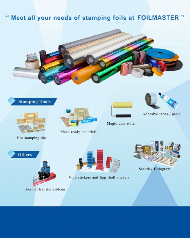 We have a wide range of stamping foils and related products to offer. This includes applications on paper, garments,