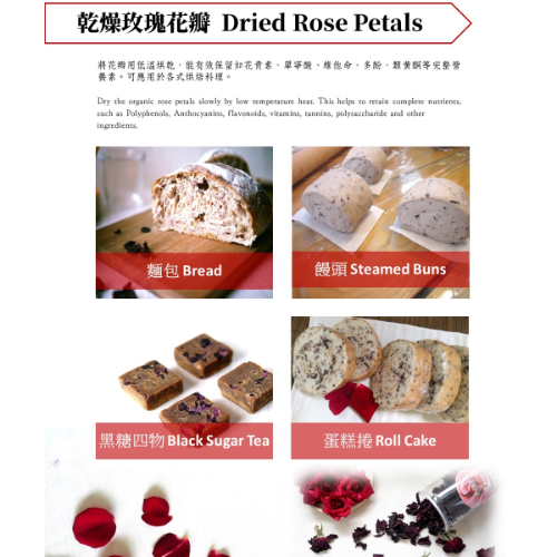 玫瑰花中富含多酚(花青素及類黃酮)、單寧酸,具有良好的抗氧化、消除自由基的功能;類黃酮則可抑菌、抗突變、癌癥、發(fā)炎、心血管疾病以及保護胃黏膜、降血糖、保護肝臟。