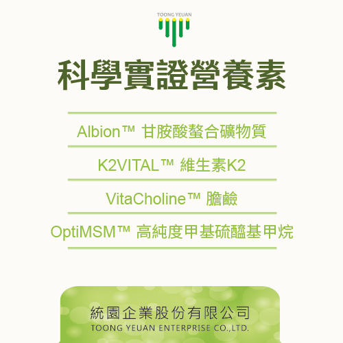 科學(xué)實(shí)證營(yíng)養(yǎng)素:Albion? 甘胺酸螯合礦物質(zhì)、K2VITAL? 維生素K2、VitaCholine? 膽鹼、OptiMSM? 高純度甲基硫醯基甲烷