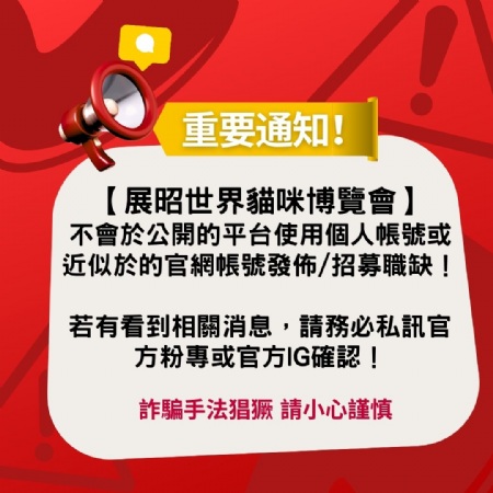 ??【防詐騙公告】??展昭世界貓咪博覽會聲明