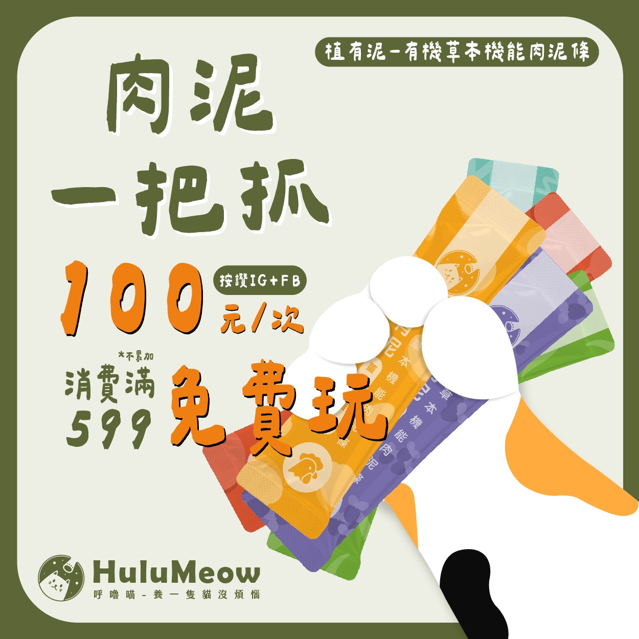 現(xiàn)場參加IG活動(dòng),立即兌換厚肉肉早點(diǎn)貓肉泥條 !