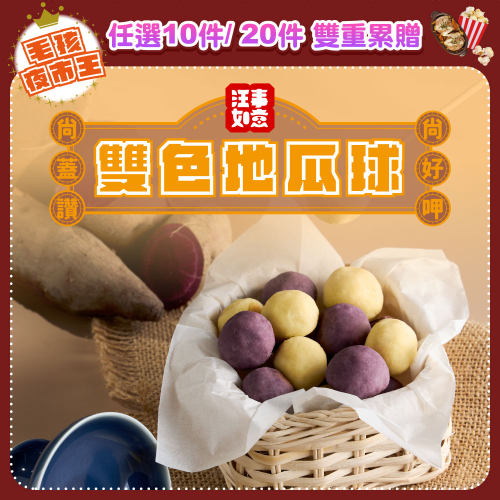 雙色地瓜球|夜市必吃小點(diǎn),嚴(yán)選富含花青素紫地瓜X維生素B1黃地瓜,非油炸!獨(dú)家烘烤技術(shù)製作而成,膳食纖維豐富!<br/>封膜內(nèi)盒|單道盒裝,可微波PP耐熱盒,吃多少拆多少。<br/>回溫即食|免開火!微波、電鍋,回溫即可享用美味。