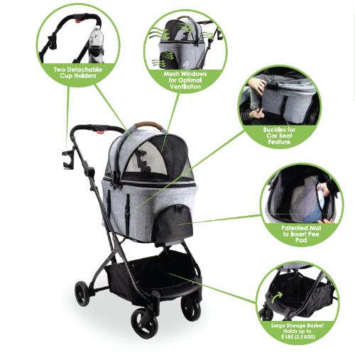 Petique 3-in-1 Tri-Fold Pet Stroller