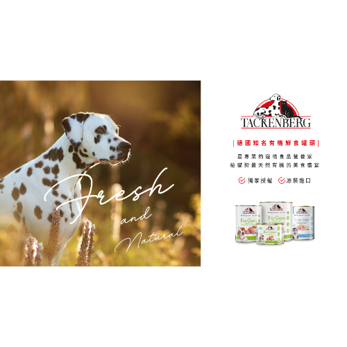 Tackenberg塔肯柏格 來自德國原裝進口的有機犬貓食品領(lǐng)導(dǎo)品牌享譽歐洲市場多年,首次登入臺灣,帶給毛孩們安心又健康的美食饗宴 。