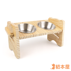 貓本屋 三段調(diào)高 雙碗實(shí)木寵物飼料架